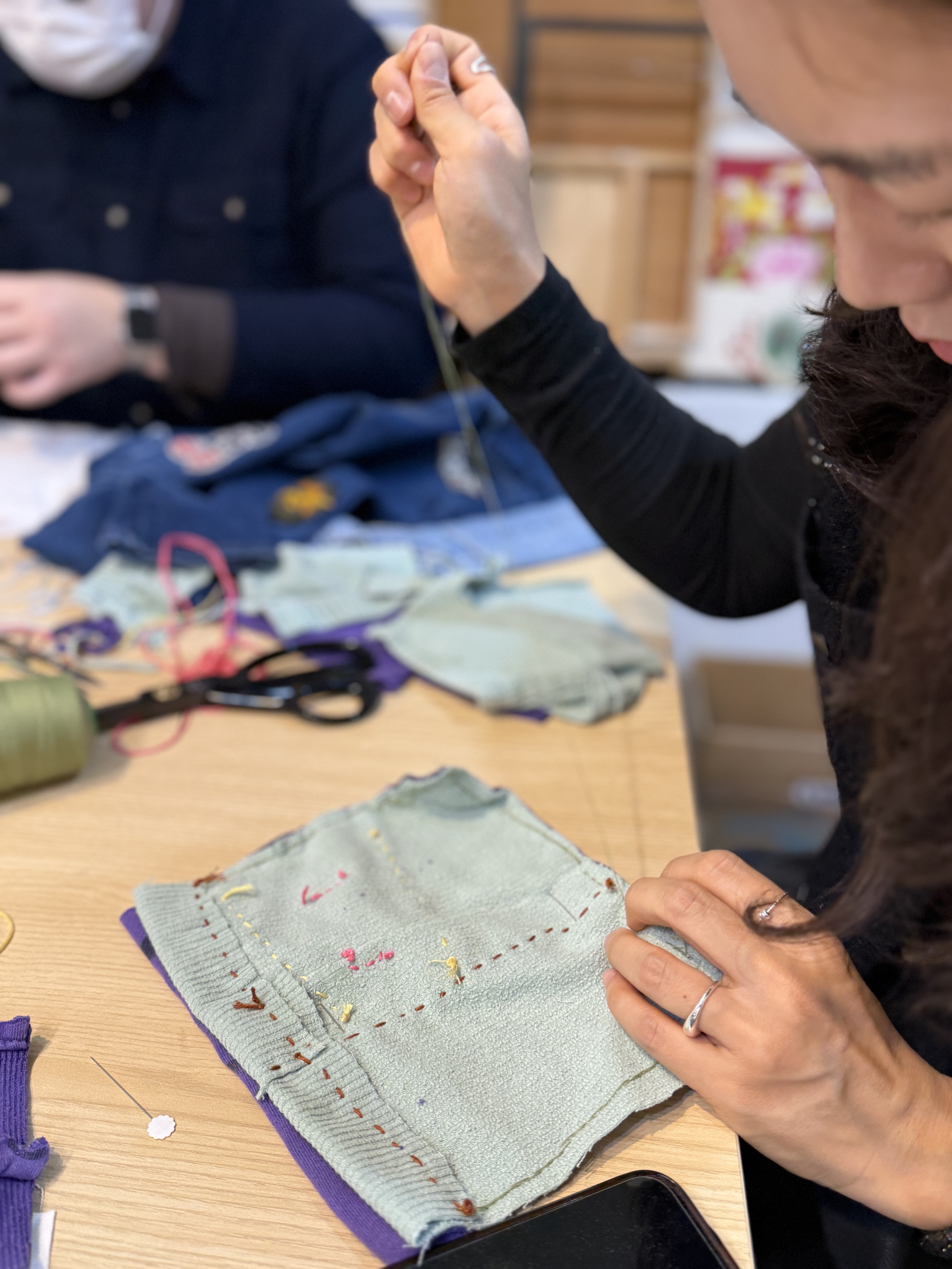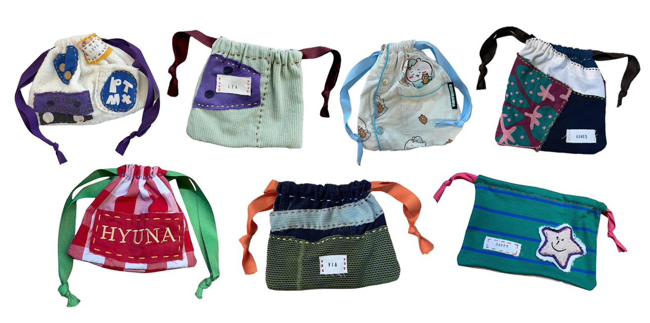 보풀 작가님은 헌 옷과 자투리 천을 새로운 가방과 소품으로 되살리는 작업을 하고, 매달 ‘자투리 콤포지션 워크숍’을 통해 오래된 것들을 다시 엮어내는 힘을 나누고 있어요. 이번 워크숍은 여기에 ‘작아진 아이옷’이라는 의미가 더해져 더 따뜻한 시간이 되었답니다.