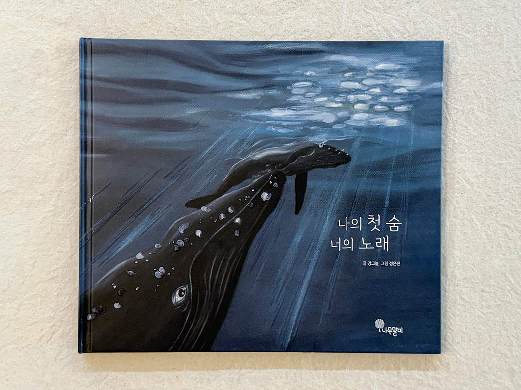 그림책〈너의 첫 숨, 너의 노래〉는 드넓은 바다에서 태어난 아기 혹등고래 ‘첫 숨’의 이야기예요. 엄마 고래의 품에서 처음 호흡을 배우고, 시작과 성장, 두려움, 자립을 지나 마침내 스스로의 삶을 살아가는 과정이 아름다운 해류처럼 잔잔하게 펼쳐집니다.