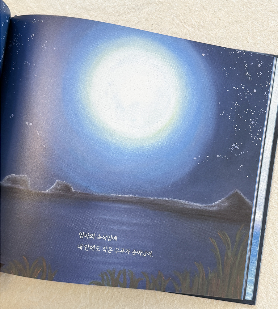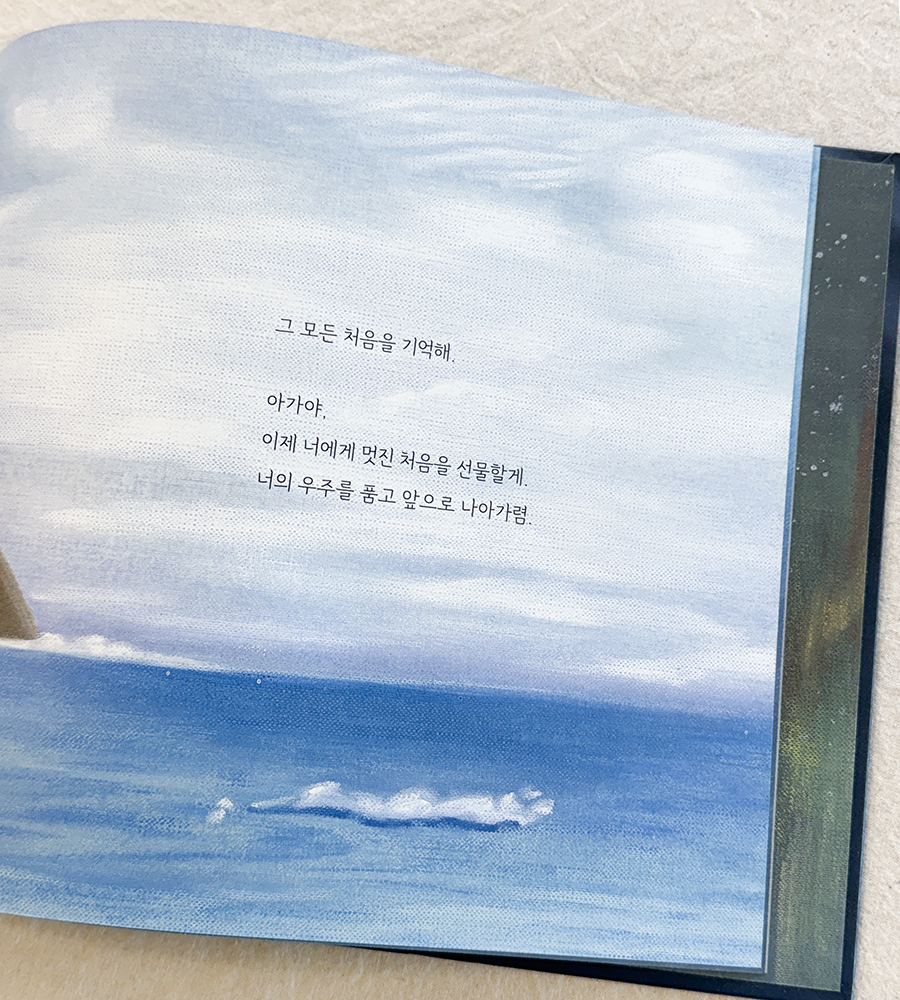 “그 모든 처음을 기억해. 아가야, 이제 너에게 멋진 처음을 선물할게. 너의 우주를 품고 앞으로 나아가렴.” |