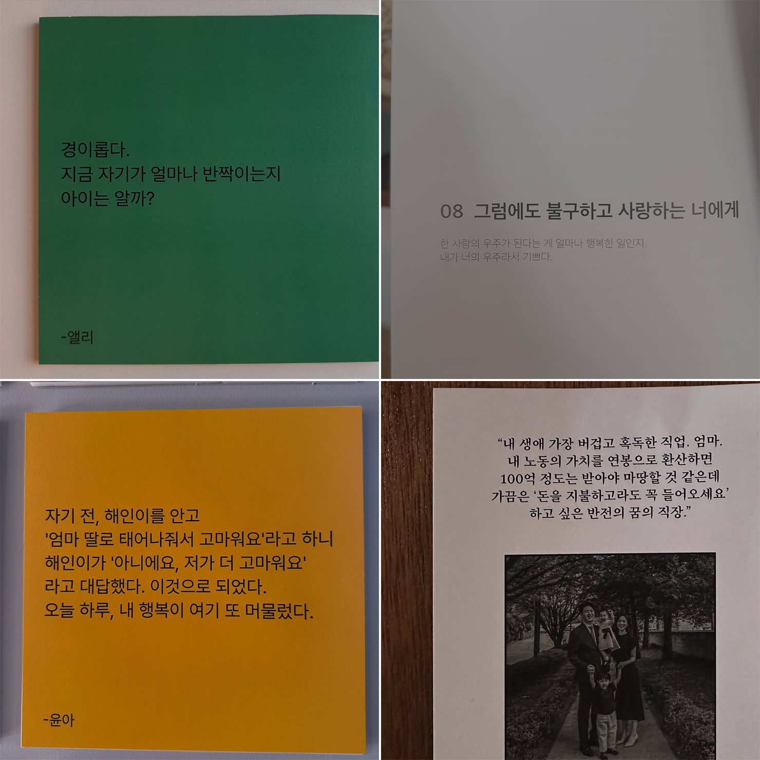 “수고 많았어요.” “나도 그랬어요.” “당신의 아이도, 분명 반짝일 거예요.”