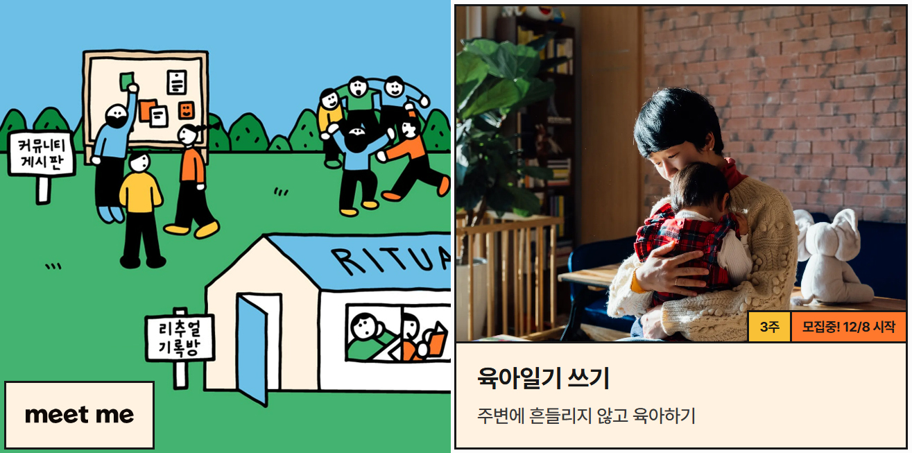 이 리추얼에 참여한 엄마들은 비슷한 고민을 가진 ‘육아 동지’들과 연결되며 서로의 고민을 나누고, 위로를 주고받아요. 그렇게 매일의 기록이 쌓이면, 어느새 ‘엄마로서의 나’뿐 아니라 ‘나 자신’도 회복하게 되죠. |